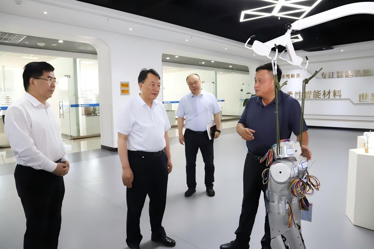 7月1日下午,合肥市委副書記、市長羅云峰走訪合肥柔性科天機器人材料有限公司(以下簡稱“柔性科天”),調(diào)研公司在人形機器人——柔性皮膚領(lǐng)域的研發(fā)與產(chǎn)業(yè)化進展。市政協(xié)副主席、市政府秘書長羅平及相關(guān)部門領(lǐng)導(dǎo)參加。科天集團董事長戴家兵博士、柔性科天負責(zé)人李維虎博士陪同匯報。
